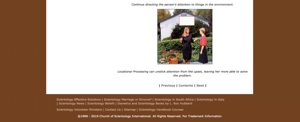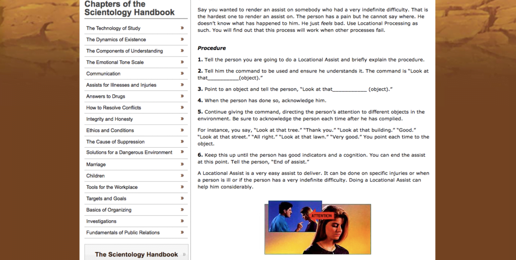 Here is an example of a locational processing assist, taken from the Scientology Handbook.